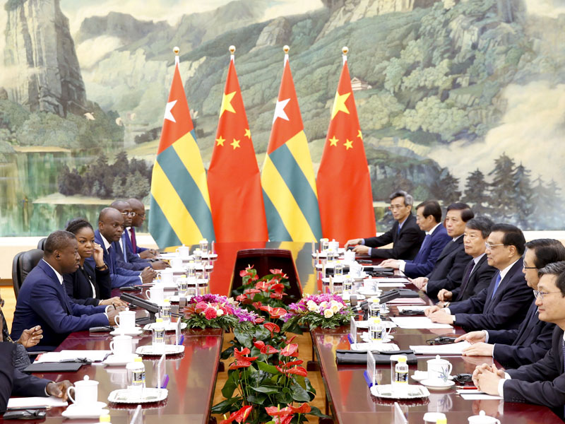 國(guó)務(wù)院總理李克強(qiáng)5月31日下午在人民大會(huì)堂會(huì)見(jiàn)來(lái)華進(jìn)行國(guó)事訪問(wèn)的多哥總統(tǒng)福雷。