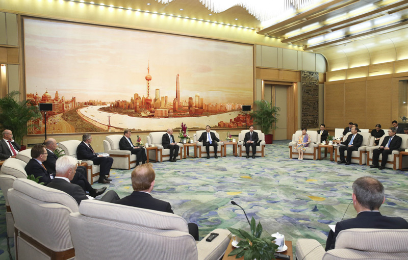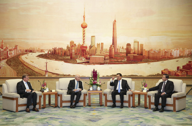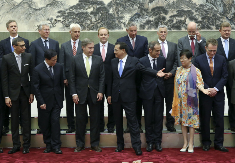 國務(wù)院總理李克強6月7日在人民大會堂會見來華出席“全球首席執(zhí)行官委員會”第四屆圓桌峰會的知名跨國企業(yè)負責(zé)人,并同他們座談交流。