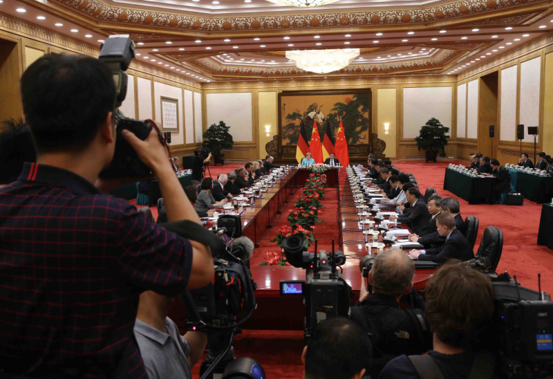 默克爾表示,《德中合作行動綱要》將兩國全方位戰(zhàn)略伙伴關(guān)系提升到新的合作水平。兩年來,兩國通過一系列雙邊對話機(jī)制,推動《綱要》得到有效落實(shí)。德方愿本著創(chuàng)新精神,與中方深入進(jìn)行對話,廣泛開展智能制造、新能源汽車、第三方市場等合作,積極加強(qiáng)人文交往和民間交流,使德中合作全面向前發(fā)展。