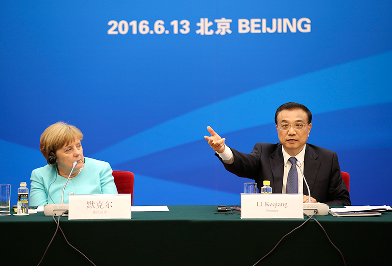 國務(wù)院總理李克強6月13日下午與德國總理默克爾在人民大會堂共同出席中德經(jīng)濟顧問委員會座談會,并同與會的中德兩國經(jīng)濟界代表座談交流。