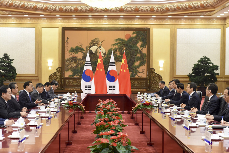 李克強(qiáng)強(qiáng)調(diào),維護(hù)東北亞和平穩(wěn)定對本地區(qū)乃至世界都具有重要意義。中方愿同韓方及有關(guān)各方共同努力,致力于實現(xiàn)半島無核化和地區(qū)發(fā)展與繁榮。雙方應(yīng)尊重彼此核心利益和重大關(guān)切,加強(qiáng)溝通與磋商,維護(hù)好中韓戰(zhàn)略合作伙伴關(guān)系與互利合作大局。