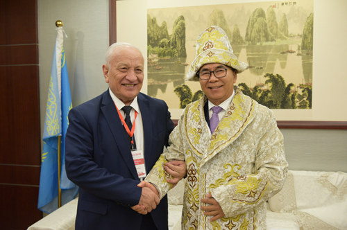 11月4日,中國科學(xué)院院長白春禮當(dāng)選哈薩克斯坦科學(xué)院(National Academy of Sciences of the Republic of Kazakhstan)院士,哈薩克斯坦科學(xué)院院長穆拉特·茹林諾夫?yàn)榘状憾Y頒發(fā)外籍院士證書并佩戴徽章。