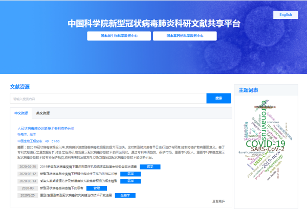 中國(guó)科學(xué)院新型冠狀病毒肺炎科研文獻(xiàn)共享平臺(tái)