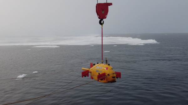 “探索4500”正在布放入水,準(zhǔn)備開展北極科考應(yīng)用