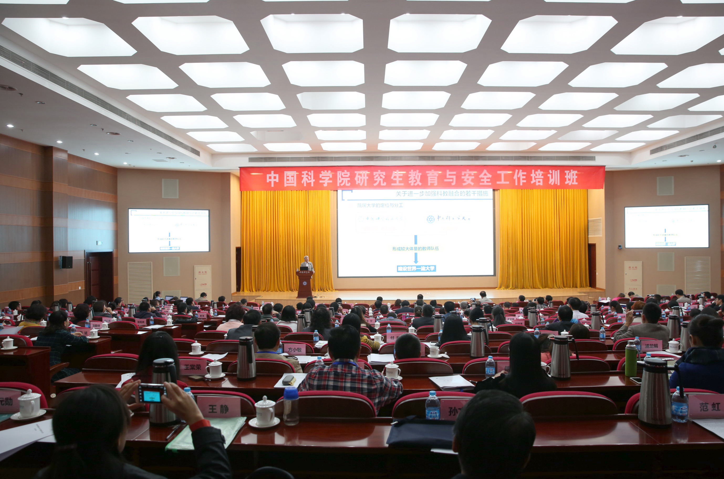 10月19日至20日,中國科學(xué)院研究生教育與安全工作培訓(xùn)班在北京舉行,全院117個(gè)院屬單位主管教育的所領(lǐng)導(dǎo)和研究生部負(fù)責(zé)人200余人參加了本次培訓(xùn)。中科院副院長丁仲禮、陰和俊和副秘書長鄧勇分別為培訓(xùn)班作了專題報(bào)告,培訓(xùn)班還邀請教育部學(xué)位管理與研究生教育司副司長徐忠波介紹了我國學(xué)位與研究生教育發(fā)展“十三五”規(guī)劃的有關(guān)考慮。