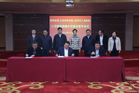 12月26日,為落實《江西省人民政府與中國科學(xué)院共建江西省科學(xué)院協(xié)議書》,中國科學(xué)院國有資產(chǎn)經(jīng)營有限責任公司(簡稱“國科控股”)與江西省科學(xué)院、撫州市政府召開了三方“科技與產(chǎn)業(yè)對接座談會”,就推進中科院、江西省的合作進行交流和討論。江西省副省長謝茹、中科院秘書長鄧麥村出席會議,見證三方簽署科技合作協(xié)議,并為兩個合作平臺揭牌。