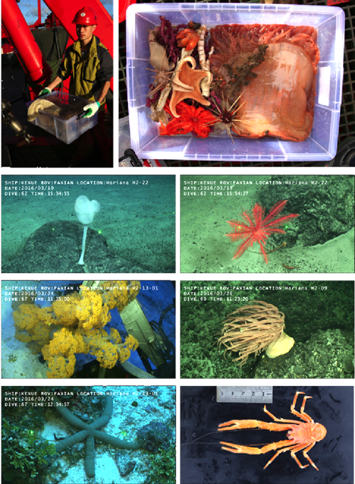 該航次首次獲取了馬里亞納海山區(qū)靶定海山的精細地形地貌圖譜,并發(fā)現(xiàn)一座具有重要研究價值的平頂海山;“發(fā)現(xiàn)”號ROV成功下潛15次,獲得了50塊巖礦樣品以及287號巨型和大型生物標本,涉及約180種珊瑚、海綿、棘皮動物、甲殼動物及魚類等生物,其中很多是未曾發(fā)現(xiàn)和描述的種類;首次實現(xiàn)6000米水深原位保壓水樣采集并成功進行培養(yǎng);通過CTD采水、浮游生物拖網(wǎng)和多聯(lián)網(wǎng)等采樣手段,獲得了靶定海山區(qū)生態(tài)系統(tǒng)的基本結(jié)構(gòu)參數(shù)。目前,科研人員正在加緊進行相關(guān)分析,以揭示該海山區(qū)生態(tài)系統(tǒng)的基本結(jié)構(gòu)、生產(chǎn)過程及其關(guān)鍵控制因素。