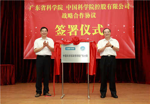 會上,袁寶成、鄧麥村共同為“中國科學院聯(lián)想學院廣東分院”揭牌,并見證了廣東省科學院與國科控股戰(zhàn)略合作框架協(xié)議簽署儀式。國科控股總經(jīng)理索繼栓,廣東省科學院黨委書記、院長廖兵代表雙方簽署戰(zhàn)略合作協(xié)議。