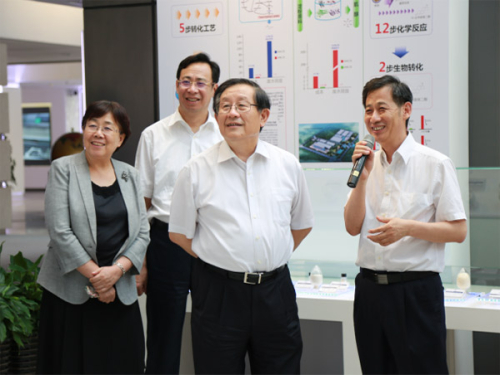 在科研成果展臺(tái)前,萬(wàn)鋼系統(tǒng)了解了天津工生所在綠色生物合成、生物質(zhì)轉(zhuǎn)化與生物制造、植物產(chǎn)物重組細(xì)胞合成等方面取得的創(chuàng)新成果,并詳細(xì)詢問(wèn)了研究所“BioInn”眾創(chuàng)空間的建設(shè)情況。萬(wàn)鋼對(duì)天津工生所科技創(chuàng)新與產(chǎn)業(yè)應(yīng)用工作給予了充分肯定,對(duì)研究所科技成果帶來(lái)的節(jié)能減排、清潔高效的社會(huì)經(jīng)濟(jì)效益表示贊賞,并對(duì)研究所提出的“工業(yè)原料路線轉(zhuǎn)變”、“化工基礎(chǔ)工藝轉(zhuǎn)變”、“傳統(tǒng)種植模式轉(zhuǎn)變”三大顛覆性發(fā)展模式寄予了殷切期望。