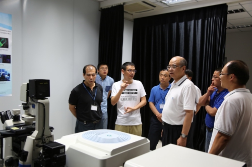 相里斌一行首先參觀了江蘇省醫(yī)用光學(xué)重點(diǎn)實(shí)驗(yàn)室、微納加工平臺(tái)和工程化平臺(tái),聽(tīng)取了科研人員關(guān)于平臺(tái)建設(shè)和“超分辨顯微光學(xué)核心部件及系統(tǒng)研制”重大項(xiàng)目進(jìn)展情況的匯報(bào)。在隨后的座談會(huì)上,蘇州醫(yī)工所黨委書(shū)記鄧強(qiáng)從研究所概況、科技布局、體制機(jī)制創(chuàng)新及近期推動(dòng)中的重點(diǎn)工作等幾個(gè)方面,對(duì)研究所籌建經(jīng)過(guò)及正式成立以來(lái)在科技創(chuàng)新和成果轉(zhuǎn)化方面的工作進(jìn)展情況進(jìn)行了匯報(bào)。