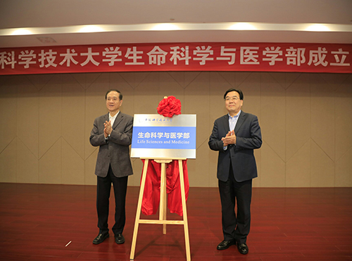韓啟德與信長星為中國科大生命科學(xué)與醫(yī)學(xué)部揭牌