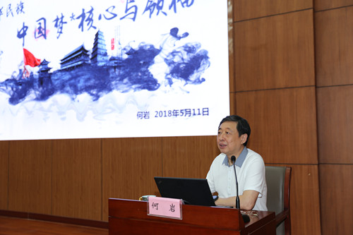 專題黨課上,何巖基于實(shí)現(xiàn)中華民族偉大復(fù)興是近代以來中華民族最偉大夢想的新時代背景及中國共產(chǎn)黨的歷史使命,作了題為《中華民族 中國夢 核心與領(lǐng)袖》的主題報(bào)告。他圍繞“中華民族”、“中國夢”及“核心與領(lǐng)袖”三條主線,結(jié)合中國少數(shù)民族演變簡況、中國歷史上的五大盛世、中國夢、核心與領(lǐng)袖等主要內(nèi)容,以“另一半中國史”為引,探索在多元一體的中華民族文化視角下,實(shí)現(xiàn)偉大中國夢的基本內(nèi)涵和重要路徑。