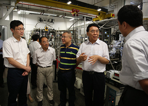 白春禮一行參觀了物理所所史展、超導(dǎo)國家重點(diǎn)實驗室、先進(jìn)材料實驗室和清潔能源實驗室,聽取了物理所所長方忠關(guān)于近期科研工作進(jìn)展和黨委書記文亞關(guān)于研究所黨建工作情況的匯報,并與多位院士專家和科研代表舉行座談,聽取他們關(guān)于中科院改革創(chuàng)新發(fā)展,特別是人才隊伍培養(yǎng)和建設(shè)方面的意見建議。