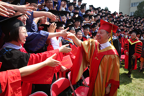 “親愛的同學(xué)們,明天,你們就是國科大新晉的校友。國科大的榮耀,是全校師生培育的,更是校友們的榮耀積淀?!崩顦渖顚磳⒆叱鲂iT的畢業(yè)生說:“相信你們所仰望的,不僅有長城上的璀璨星空,更有心中恪守的天地正氣。”