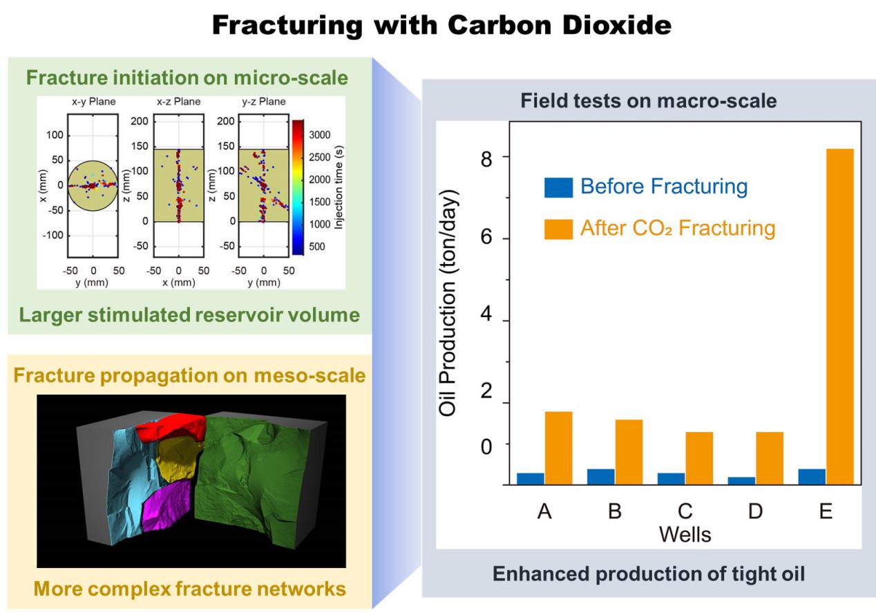 近日,中國科學(xué)院上海高等研究院低碳轉(zhuǎn)化科學(xué)與工程重點(diǎn)實(shí)驗(yàn)室在多尺度二氧化碳壓裂驅(qū)采非常規(guī)油氣資源機(jī)制研究方面取得進(jìn)展。相關(guān)結(jié)果于5月30日在線發(fā)表在《焦耳》 (Joule 2019, doi: 10.1016/j.joule.2019.05.004)。
