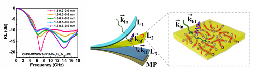 電磁波吸波材料通過損耗電磁能量可實現(xiàn)電磁波較少反射甚至無反射,在電子、通訊設(shè)備電磁兼容領(lǐng)域具有廣泛的應(yīng)用。隨著5G和雷達(dá)通訊等技術(shù)的興起,電磁波應(yīng)用頻譜從米波拓展至毫米波,導(dǎo)致吸波材料需求日益增大。如何在保證較薄厚度下實現(xiàn)寬頻有效吸收(吸收率大于90%,Reflection Loss ≤-10dB)是目前吸波材料應(yīng)用發(fā)展的重要難題。