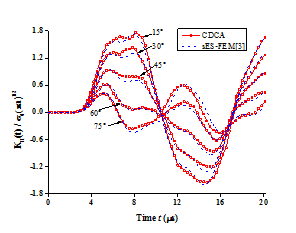 圖3 巖石裂紋KI隨計(jì)算時(shí)間的演化