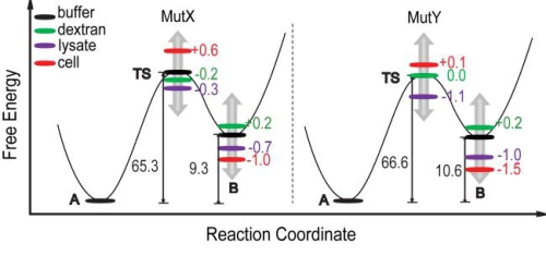 GB3突變體MutX和MutY在不同條件下的自由能圖