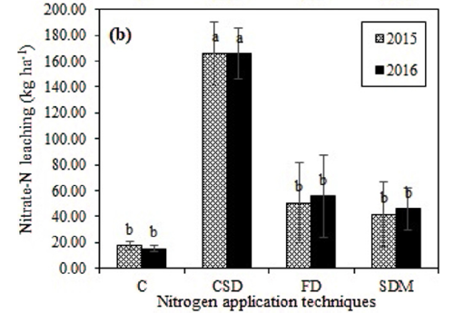 氮是植物生長重要的必需養(yǎng)分,但其在砂土中淋失率高,尤其是作物吸收較好的硝態(tài)氮(NO3--N),相對而言,淤泥或粘土中的硝化過程較排水和通氣良好的土壤快得多。因此,在沙質(zhì)土壤中,NO3--N的淋溶速度更快,幾天內(nèi)從根部土壤排出,幾個月后滲濾進(jìn)入含水層,對地下水水質(zhì)造成嚴(yán)重危害。此外,傳統(tǒng)的洪水灌溉和施氮方式進(jìn)一步加劇了氮素淋失,導(dǎo)致氮吸收率降低,限制了作物的生長和生產(chǎn)力。因此,改進(jìn)施肥方式不僅對作物的健康生長有益,而且對環(huán)境保護(hù)具有重要意義。