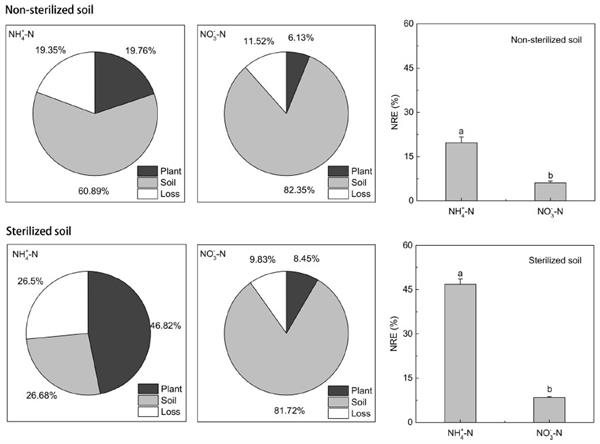 玉米是我國三大糧食作物之一,氮肥用量大,利用率低。玉米是一種在旱作條件下栽培的作物,其生長的土壤硝化作用一般較強(qiáng),無機(jī)氮源中硝態(tài)氮比例較高,所以傳統(tǒng)上玉米被認(rèn)為是一種偏好硝態(tài)氮作物。課題組通過土培試驗(yàn)(土壤pH 6.5),采用15N標(biāo)記的方法,比較了外源供應(yīng)銨態(tài)氮和硝態(tài)氮對(duì)玉米生長和氮肥利用率的影響。研究結(jié)果卻表明,供應(yīng)銨態(tài)氮的玉米有著更高生物量和氮肥利用率。通過伽馬射線對(duì)土壤滅菌,阻止土壤硝化作用和微生物對(duì)氮素轉(zhuǎn)化的影響,也大幅提高了銨態(tài)氮的氮肥利用率,而對(duì)硝態(tài)氮影響較小。盡管供應(yīng)銨態(tài)氮和硝態(tài)氮的氮素?fù)p失差異不顯著,但是在收獲玉米后,供應(yīng)硝態(tài)氮的土壤殘留肥料氮顯著高于銨態(tài)氮,并大多以無機(jī)形態(tài)存在,極大地增加了淋溶及氣態(tài)損失的風(fēng)險(xiǎn)。進(jìn)一步的水培試驗(yàn)結(jié)果也表明,玉米在銨態(tài)氮中生長好,氮吸收量大。依據(jù)這些結(jié)果,認(rèn)為供應(yīng)銨態(tài)氮的玉米氮肥利用率高與玉米對(duì)銨態(tài)氮的偏好生長和吸收特性有關(guān),利用玉米對(duì)銨態(tài)氮的高效吸收可以提高其氮肥利用率。這表明可以通過調(diào)控土壤氮素轉(zhuǎn)化或改良玉米銨硝偏好遺傳特性的方法,來提高玉米氮肥利用率,這一策略的可行性和有效性尚需在田間條件下進(jìn)一步檢驗(yàn)。相關(guān)研究結(jié)果最近發(fā)表在Plant and soil上(Zhang et al., 2019)。該研究得到中科院戰(zhàn)略性先導(dǎo)科技專項(xiàng)(B類)和國家自然科學(xué)基金項(xiàng)目資助。
