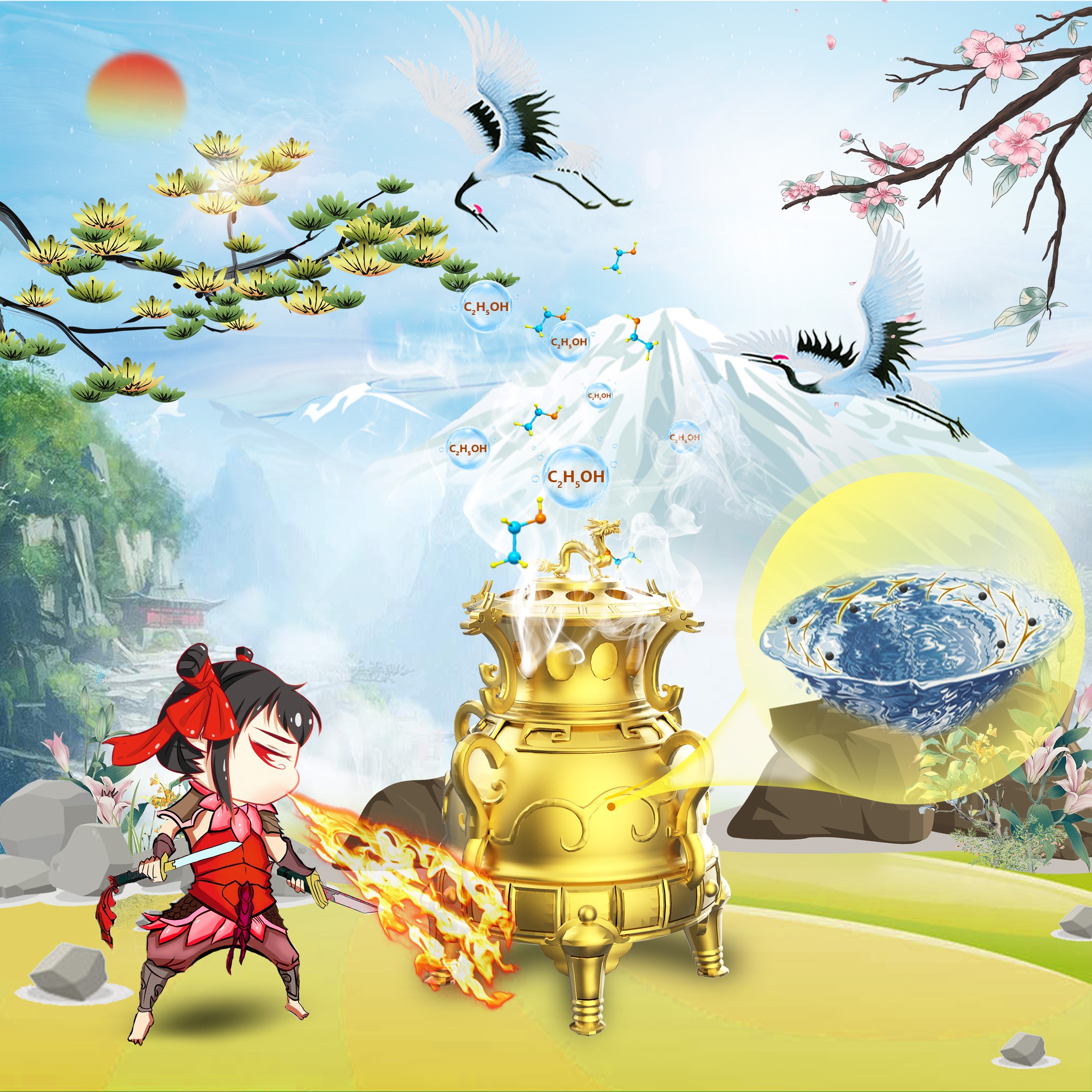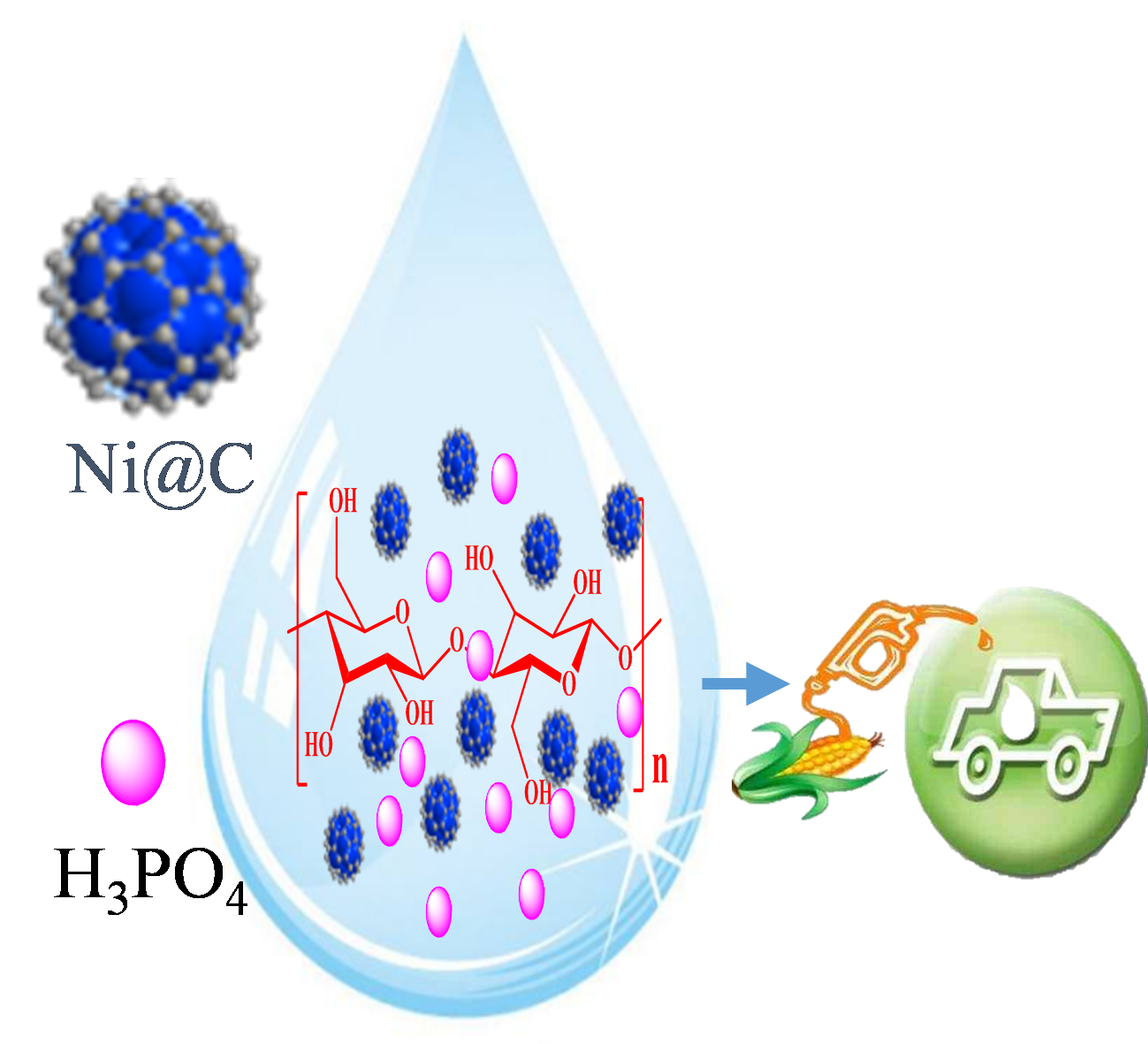 馬隆龍研究團隊成功研發(fā)了Ni@C催化劑,通過精確調控催化劑的結構,實現(xiàn)了纖維素—乙醇的一步水相轉化,收率高達69%,在高濃度纖維素反應條件下獲得乙醇的濃度高達8.9wt%,與酶解-發(fā)酵法的理論產率相當。研究發(fā)現(xiàn),H3PO4與乙醇生成的中間產物葡萄糖形成的環(huán)狀二酯配合物可有效使后者活化,在表面帶有負電荷的Ni@C催化劑協(xié)同氫解作用下精準斷裂葡萄糖分子中的C-C和C-O鍵生成乙醇。該研究系首次在非貴金屬催化劑上實現(xiàn)纖維素—乙醇的一步轉化,為高效、低成本纖維素乙醇的工業(yè)化生產提供了新途徑。相關工作(Selective Cellulose Hydrogenolysis to Ethanol Using Ni@C Combined with Phosphoric Acid Catalysts,DOI: 10.1002/cssc.201901110)被選做前封面文章發(fā)表在ChemSusChem。