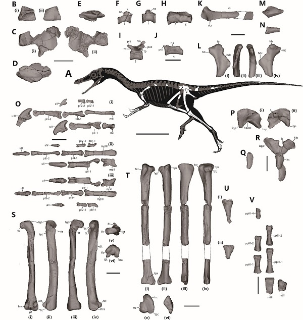 幸運的是,來自中國西部中晚侏羅世到早白堊世的化石記錄,包括靈巧簡手龍、趙氏敖閏龍、烏拉特半爪龍、彭氏西域爪龍等,逐步填補了阿爾瓦雷斯龍類演化歷史中的大段空白。繼這一系列重要發(fā)現(xiàn)之后,中國科學(xué)院古脊椎動物與古人類研究所徐星研究團隊又于近日在《科學(xué)報告》(Scientific Reports)雜志發(fā)表了關(guān)于阿爾瓦雷斯龍類的最新研究成果,報道了又一件基干的阿爾瓦雷斯龍類化石標本。