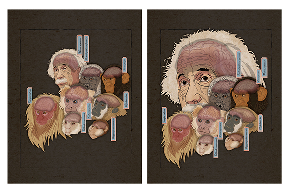 該研究以智利猴為參照點,揭示出在不同支系的類人猿中,腦的演化會有相同的趨勢,但是人類支系腦的演化趨勢卻顯著不同。戲謔一點兒,如果自然是理性的,那么人腦一定是近于瘋狂了。