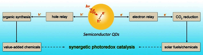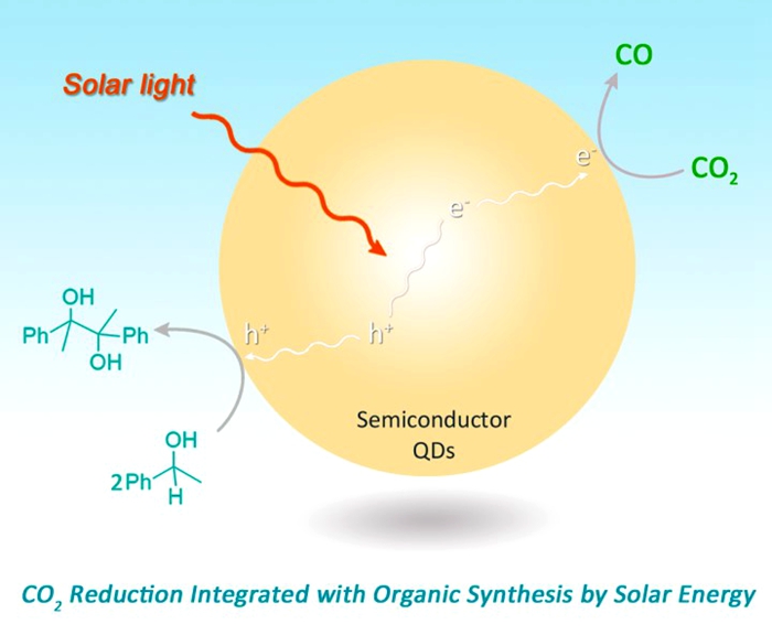 圖1. 可見(jiàn)光下半導(dǎo)體量子點(diǎn)光催化CO2還原耦合氧化有機(jī)合成反應(yīng)