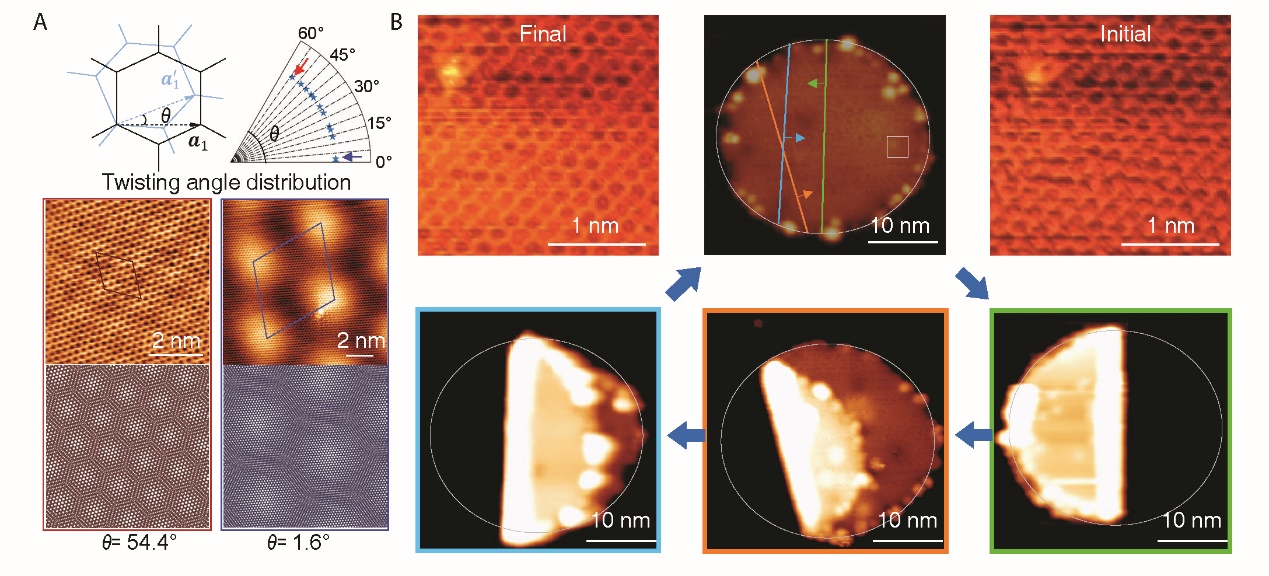 圖2 折疊方向精確控制以及角度連續(xù)可調的旋轉堆垛雙層石墨烯的構筑。