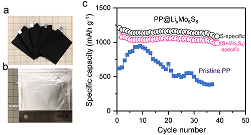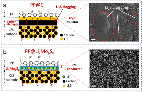 圖4. PP@LixMo6S8功能隔膜與涂覆碳PP@C隔膜對比圖