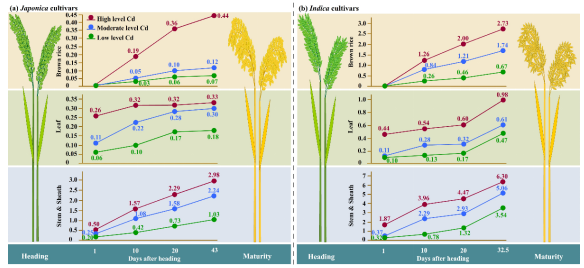 研究結(jié)果揭示,可通過選擇秈改粳或?qū)刖鞠嚓P(guān)鎘吸收運轉(zhuǎn)和積累基因,以及在鎘吸收積累關(guān)鍵時期結(jié)合灌溉等農(nóng)藝措施降低水稻生產(chǎn)中籽粒鎘污染風(fēng)險,保障糧食生產(chǎn)安全。