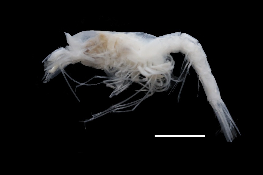 糠蝦(mysids)是一類小型甲殼動(dòng)物,全世界共有1100種以上,廣泛存在于淡水、半咸水、海水、地下水等各類水體中,從潮間帶淺海到海溝深淵均有分布。許多深海種類為了適應(yīng)黑暗環(huán)境,眼部退化為無色素細(xì)胞和光學(xué)感受器的眼板(eyeplate)。因此,這一類群在生物多樣性、生態(tài)學(xué)和生物進(jìn)化研究方面具有重要意義。