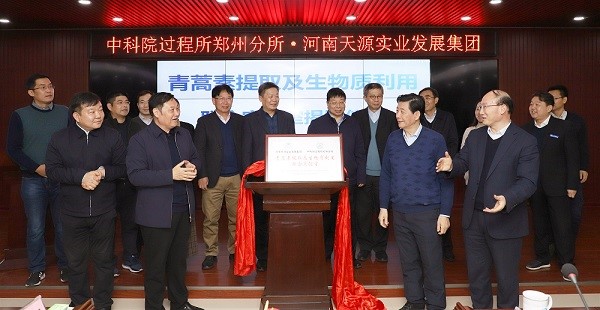 鑒定會后,過程工程所鄭州分所和河南天源實業(yè)發(fā)展集團舉行了共建“青蒿素提取及生物質(zhì)利用聯(lián)合實驗室”揭牌儀式,雙方將進一步深入開展科技合作,進行綠色技術(shù)攻堅,加快產(chǎn)學(xué)研步伐,促進成果轉(zhuǎn)移轉(zhuǎn)化,為綠色技術(shù)創(chuàng)新和可持續(xù)發(fā)展進行不斷探索。