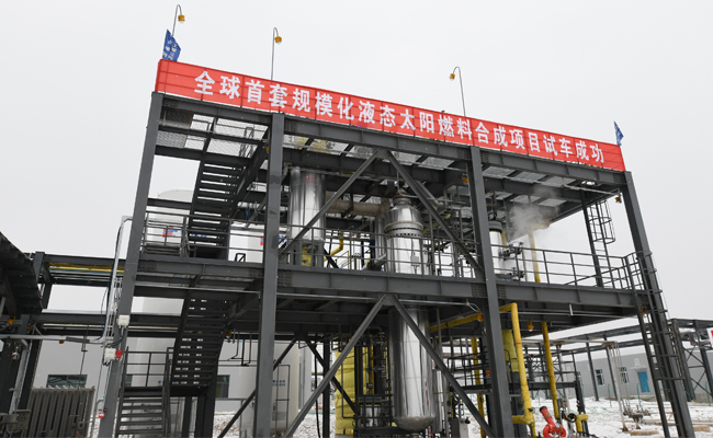 1月17日,全球首套千噸級(jí)規(guī)模太陽燃料合成示范項(xiàng)目在蘭州新區(qū)綠色化工園區(qū)試車成功。該項(xiàng)目邁出了將太陽能等可再生能源轉(zhuǎn)化為液體燃料工業(yè)化生產(chǎn)的第一步。