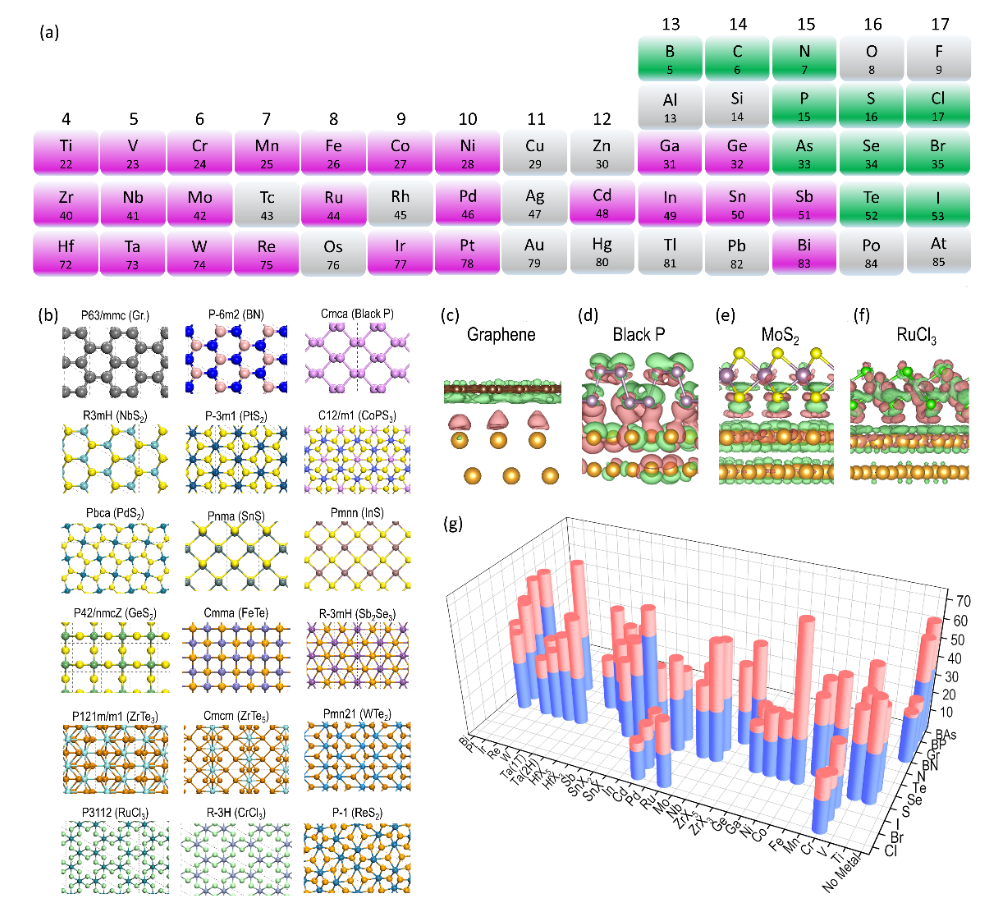 圖1. 不同層狀材料自身層間結(jié)合能以及與金相互作用能的對比。