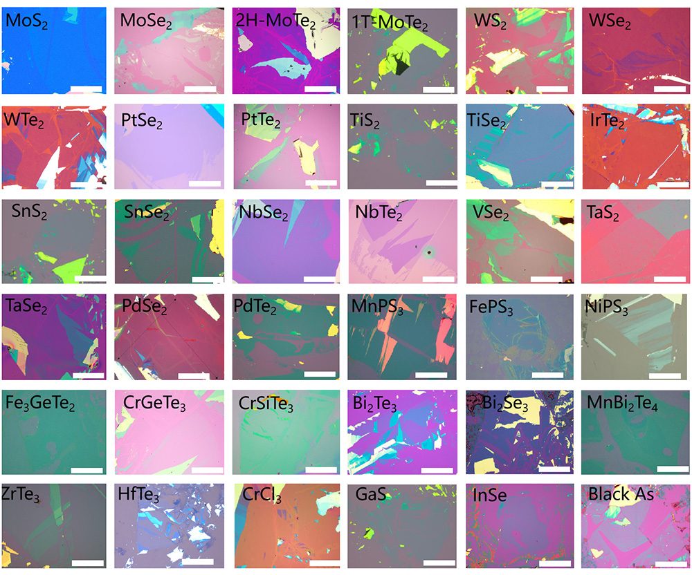 二維材料家族涵蓋了絕緣體、半導(dǎo)體、金屬和超導(dǎo)體,并展現(xiàn)出許多不同于三維材料的新奇物性,是近年來凝聚態(tài)物理和材料科學領(lǐng)域的研究熱點。制備高質(zhì)量的二維材料,特別是原子層量級的超薄材料,是開展二維材料前沿探索的基礎(chǔ)。2004年,諾貝爾物理學獎得主Geim教授和Novoselov教授最早發(fā)展出了機械解理技術(shù),并獲得了單層石墨烯,掀起了二維材料的研究熱潮。近十多年來,機械解理技術(shù)已被廣泛應(yīng)用于制備各種高質(zhì)量的二維材料。石墨烯、MoS2以及單層高溫超導(dǎo)材料Bi2212等諸多材料的本征物理性質(zhì),都是在機械解理的樣品上觀察到。在異質(zhì)結(jié)和轉(zhuǎn)角石墨烯等人造晶體中,機械解理的樣品也同樣展現(xiàn)出獨特的優(yōu)勢。機械解理的樣品與基底相互作用弱,制備過程相對簡單,樣品質(zhì)量高,這些優(yōu)勢使得該方法在二維材料研究中獲得了極大的成功。但是隨著研究的深入,人們發(fā)現(xiàn)該方法同樣存在許多不足,特別是制備效率低和樣品尺寸小等問題,限制了許多先進的實驗手段如掃描隧道顯微鏡(STM)、紅外-太赫茲光譜以及角分辨光電子能譜(ARPES)對二維材料的研究。