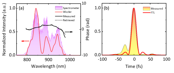 上海光機(jī)所采用超連續(xù)譜產(chǎn)生結(jié)合飛秒光學(xué)參量放大技術(shù),通過級聯(lián)光參量放大和精密色散控制技術(shù)獲得重復(fù)頻率1kHz、與超寬帶光學(xué)參量放大匹配的910nm中心波長、高于100微焦的脈沖能量、大于200nm的超寬帶寬、小于15fs的脈沖寬度、優(yōu)于1012的超高時(shí)間對比度以及時(shí)空質(zhì)量優(yōu)良的輸出,綜合性能滿足100拍瓦激光系統(tǒng)的要求。目前該種子源已投入工程應(yīng)用,為后續(xù)系統(tǒng)的研制提供基礎(chǔ)與保障。