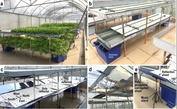 近期,中國科學(xué)院華南植物園分子生物分析及遺傳改良研究中心工程師蘇韻琳等設(shè)計(jì)出帶有反光板的雙層水培種植裝置,舍棄對(duì)人工光源的使用,利用節(jié)能低成本的方法,將陽光通過反射板照射到底層,促進(jìn)底層作物的生長。研究顯示,結(jié)合適當(dāng)栽培策略,該裝置能有效增加樓頂蔬菜產(chǎn)量,提高樓頂農(nóng)業(yè)經(jīng)濟(jì)效益。