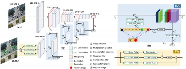 針對(duì)復(fù)雜場(chǎng)景的小目標(biāo)檢測(cè)和計(jì)數(shù)問題,軟件所團(tuán)隊(duì)設(shè)計(jì)了一種新的基于特征金字塔的注意力網(wǎng)絡(luò)來處理目標(biāo)檢測(cè)和計(jì)數(shù)任務(wù)。與以往依賴于無監(jiān)督注意模塊的方法不同,團(tuán)隊(duì)充分利用了背景和目標(biāo)之間的弱監(jiān)督信息,融合不同尺度的特征圖,獲得更語義化的特征表示。同時(shí),前景模塊考慮了全局和局部外觀的目標(biāo),以方便準(zhǔn)確定位。