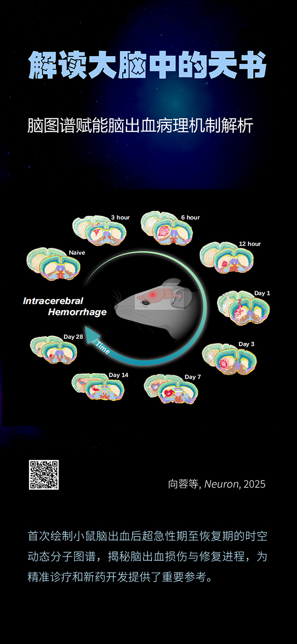 三是腦圖譜賦能腦疾病機(jī)制解析。研究人員利用Stereo-Seq空間轉(zhuǎn)錄組技術(shù),首次繪制正常人及阿爾茨海默?。ˋD)患者海馬的單細(xì)胞分辨率空間轉(zhuǎn)錄圖譜,發(fā)現(xiàn)了病理性小型膠質(zhì)細(xì)胞和星形膠質(zhì)細(xì)胞在海馬傘區(qū)域的高度富集及細(xì)胞通訊增強(qiáng),解析了Aβ微環(huán)境分子變化,為AD病理研究提供了更精細(xì)、系統(tǒng)的分子機(jī)制解析,并為AD的早期診斷提供了新的可能性;首次繪制小鼠腦出血后超急性期至恢復(fù)期的時(shí)空動態(tài)分子圖譜,揭秘腦出血損傷與修復(fù)進(jìn)程,闡明了以膠質(zhì)細(xì)胞為代表的多種細(xì)胞類型在組織損傷與修復(fù)過程中的關(guān)鍵作用,為新藥開發(fā)和精準(zhǔn)治療提供了重要參考。