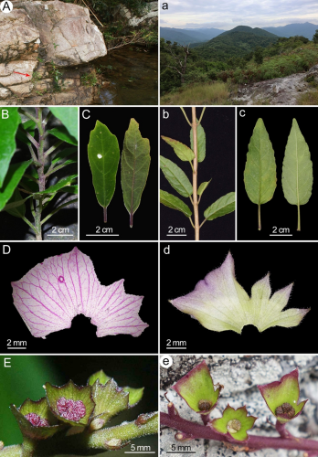 韞珍花(A–E)和吳氏韞珍花(a–e)的生境和形態(tài)對比