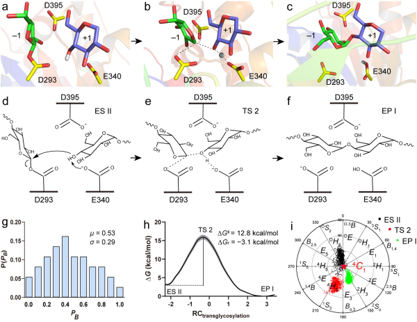 進(jìn)一步,團(tuán)隊利用Mass spectrometry檢測發(fā)現(xiàn),在AM催化多糖底物后,生成聚合度范圍為22至61的CA,證實了理論計算推測。團(tuán)隊同時探討AM中轉(zhuǎn)糖基化和水解關(guān)系這一問題,量化了二者之間的動力學(xué)競爭平衡,為設(shè)計具有更高效率和特異性的轉(zhuǎn)糖苷酶提供了機(jī)制見解。