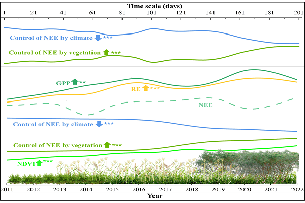 植被和氣候在自然修復(fù)過程中對生態(tài)系統(tǒng)碳通量的控制
