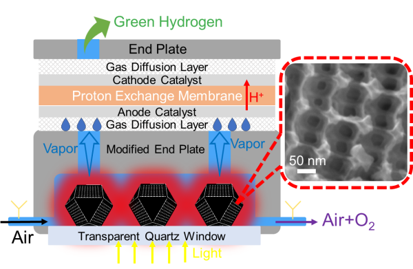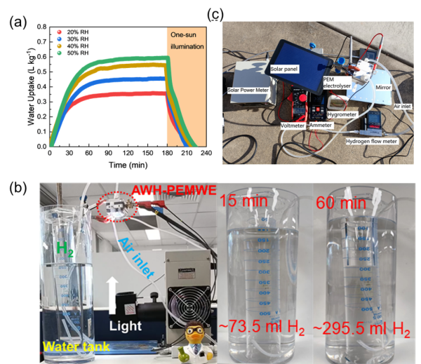 質(zhì)子交換膜電解水技術(shù)是生產(chǎn)綠氫的主要技術(shù)路線之一,因高效率和高純度氫氣輸出而備受關(guān)注。但是,質(zhì)子交換膜電解水過(guò)程依賴高純水為反應(yīng)原料,限制其應(yīng)用。空氣集水作為獲取純凈水的新途徑,有望為綠氫生產(chǎn)過(guò)程中的水源短缺問(wèn)題提供解決方案。