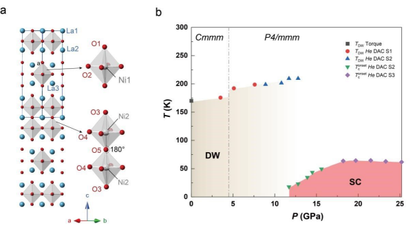 La5Ni3O11的晶體結構(a)和高壓相圖(b)