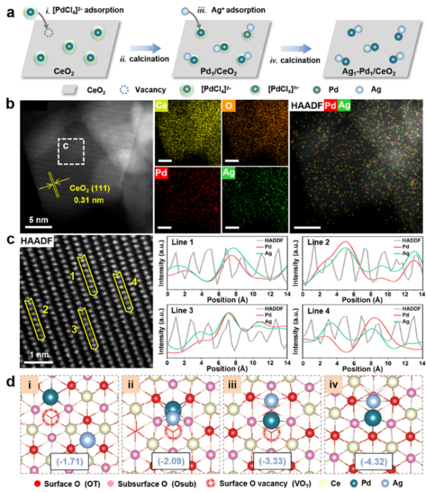 近日,中國科學(xué)院青島生物能源與過程研究所提出了一種新型的種子介導(dǎo)策略,成功構(gòu)建了具有明確Ag1-Pd1雙原子構(gòu)型的Ag1-Pd1/CeO2催化劑。