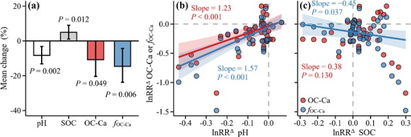 土壤有機(jī)碳(SOC)是陸地生態(tài)系統(tǒng)中最大的碳庫(kù),其穩(wěn)定性對(duì)全球氣候變化應(yīng)對(duì)至關(guān)重要。基于SOC的多庫(kù)特性解釋其穩(wěn)定性,可以減少全球變化下SOC動(dòng)態(tài)預(yù)測(cè)的不確定性。作為SOC中的一個(gè)重要組分,鈣結(jié)合有機(jī)碳(OC-Ca)被認(rèn)為通過鈣橋作用增強(qiáng)SOC的穩(wěn)定性。然而,OC-Ca的大尺度分布規(guī)律、全球變化響應(yīng)及主導(dǎo)影響機(jī)制仍不明確。