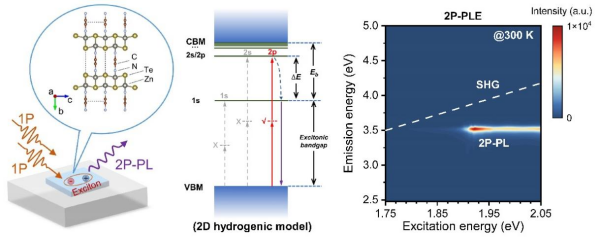 最近,中國(guó)科學(xué)院半導(dǎo)體研究所研究員譚平恒團(tuán)隊(duì)與合作者,利用一種結(jié)合單光子熒光與雙光子熒光激發(fā)光譜的聯(lián)合測(cè)量方法,成功估算了β-ZnTe(en)0.5的激子束縛能。該方法利用了單光子躍遷與雙光子躍遷遵循不同選擇定則的特性:?jiǎn)喂庾舆^(guò)程只能探測(cè)具有偶宇稱的激子態(tài)(如1s基態(tài)),而雙光子過(guò)程則可以探測(cè)具有奇宇稱的激子態(tài)(如2p激發(fā)態(tài))。通過(guò)精確測(cè)量1s態(tài)與2p態(tài)之間的能量差,并基于二維類氫模型進(jìn)行分析,即可估算所測(cè)半導(dǎo)體材料的激子束縛能下限。