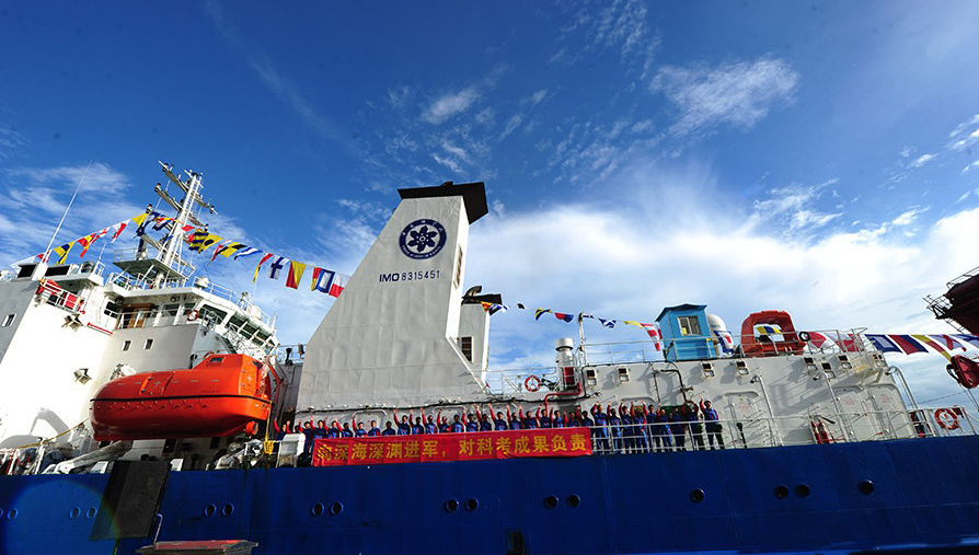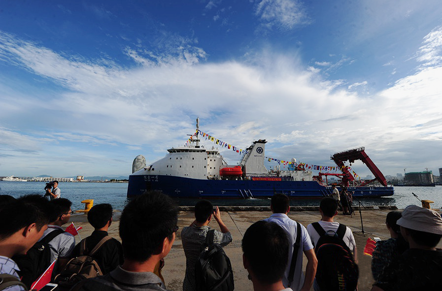 8月12日上午8點,中國4500米載人潛水器及萬米深潛作業(yè)的工作母船“探索一號”科考船首航歸來。中國科學(xué)院院長、黨組書記白春禮向科考隊致賀信,中科院副院長相里斌、海南省副省長王路,科技部、國家海洋局、中國船舶重工集團、中國五礦集團等有關(guān)部門和單位相關(guān)負(fù)責(zé)人以及科考隊員家屬代表在三亞碼頭迎接科考隊返航。