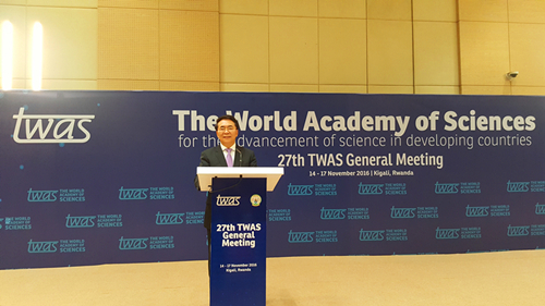 發(fā)展中國家科學院(TWAS)第27屆院士大會11月14日在盧旺達首都基加利開幕。TWAS院長、中國科學院院長白春禮主持大會開幕式,盧旺達總統(tǒng)Paul Kagame出席大會并致賀辭。全球60多個國家和地區(qū)的300多名科學家,多個國家的科技部長或代表、國際組織的代表參會,圍繞“科技創(chuàng)新與可持續(xù)發(fā)展”這一廣為關(guān)注的主題進行研討。